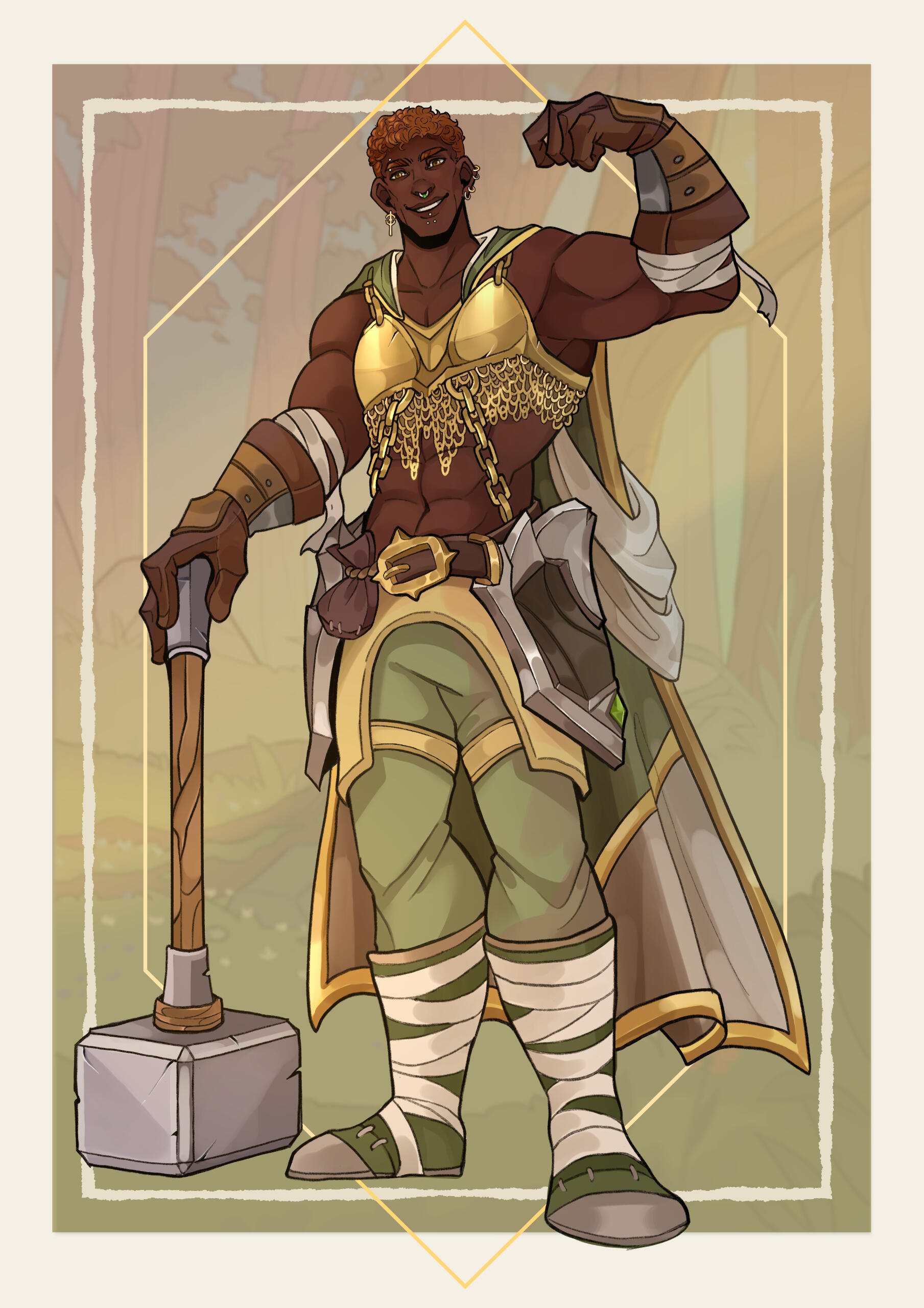 a young warrior with a strong, youthful frame, cladding a mixture of mail and leather. with a scarred and wrinkled appearance, this man has experienced more than his actual age may let on. some bright facial piercings are to be found, and a few ear rings. his face is usually clean, though some beard shadow is to be found at most times.elstin seems rather self-absorbed and not all that exciting to converse with. Using blunt language and even slurs when he deems them appropriate, staring off away from conversation on other occasions, though usually unassuming amidst a crowd of more shining personalities. He seems to lack interests typically found among some of his peers and stands as a tempered, dark-skinned human with compassion that does not reach further than putting a smile on other people's lips.recent events on both azeroth and his personal life made elstin change his ways significantly: now a rebel to many in the eyes of his former order, he has embraced more 'brute' ways of combat, vowing to protect the innocent while foregoing the etiquette of a noble knight for good.
